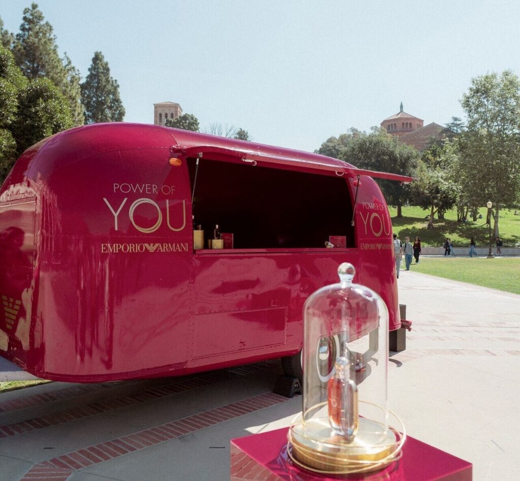 Enquanto muitas marcas seguem presas à métrica de engajamento, a Armani Beauty decidiu ir além. A grife colocou o lançamento do novo Power of You EDP na estrada — literalmente. Em uma turnê universitária que passou por UCLA, Ohio State, Universidade do Alabama e Spelman College, a marca transformou o burburinho alimentado por influenciadores em experiências tangíveis de alto impacto.
