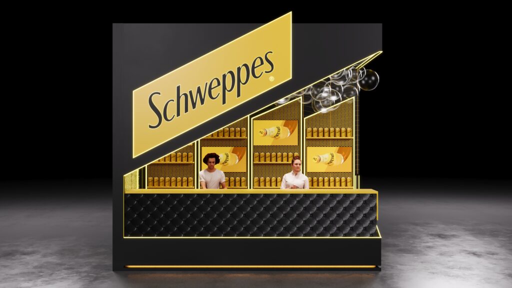 Já a Schweppes, também sob o comando da Samba, aposta em um bar premium de drinks que coloca as bebidas da marca como protagonistas. Com uma cenografia que remete à refrescância do portfólio, o espaço quer mostrar a versatilidade da marca em diferentes composições. E mais: quem passar por lá vai ganhar um brinde de respeito — um óculos escuro superestiloso.