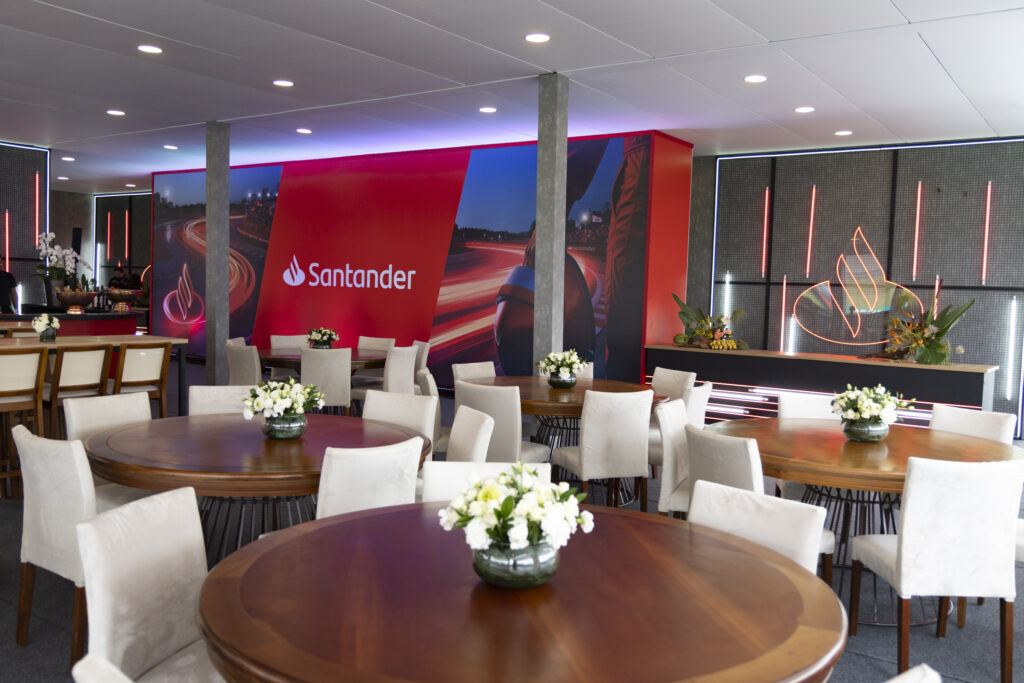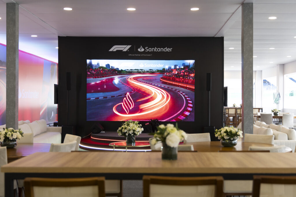 Durante os três dias do GP, os convidados são recebidos em um espaço exclusivo do Santander dentro do autódromo, que conta com DJ, opções gastronômicas e ativações de marca — incluindo cabines de fotos e experiências interativas relacionadas ao universo da Fórmula 1.