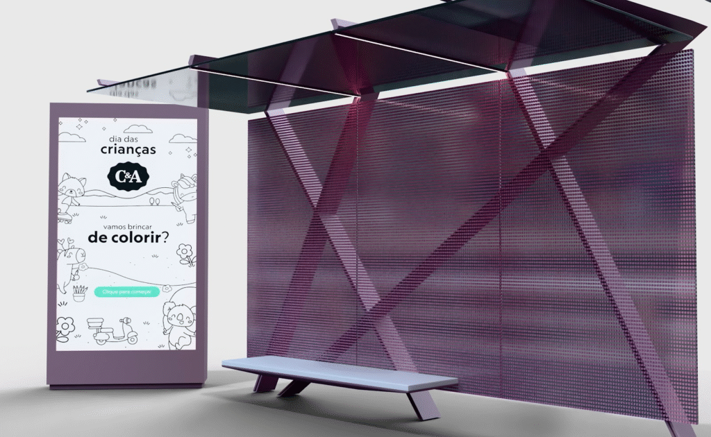 Para marcar o Dia das Crianças, a C&A oferece uma ativação inédita em um dos endereços mais icônicos de São Paulo: a Avenida Brigadeiro Faria Lima. Um abrigo de ônibus interativo foi criado em parceria com a Eletromidia, transformando a tela digital do ponto em um livro de colorir virtual, onde as crianças podem pintar e soltar a imaginação enquanto aguardam o transporte.