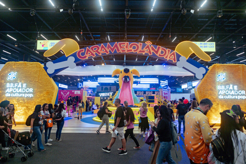 A ativação funciona como um circuito com diferentes desafios: um escorregador de 4 metros instalado na “língua” do Caramelo, uma arena para acertar bolas de vôlei em um alvo e até um quebra-cabeça temático do cartão BB Visa exclusivo da CCXP. O enorme caramelo — simpático, icônico e fortemente ligado à identidade brasileira, graças ao famoso vira-lata caramelo — se destaca entre as inúmeras atrações do evento.