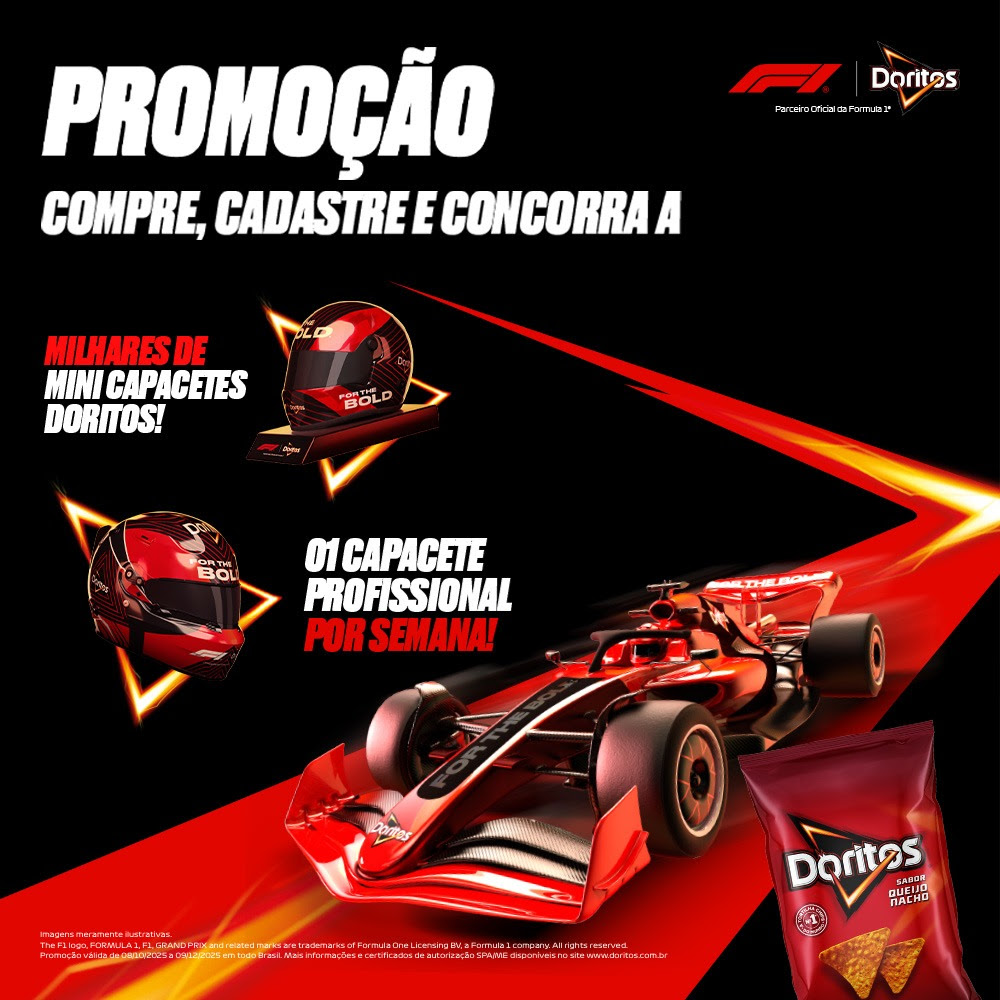 “Doritos sempre se conectou com quem ousa e tem coragem de ser você mesmo. A parceria com a F1 é extremamente estratégica, pois reforça essa atitude, unindo a energia das arquibancadas, a ousadia dos pilotos e o espírito global do esporte. É a chegada da intensidade de Doritos às pistas, com patrocínio previsto para os próximos 5 anos”, revela Samia Chehab, diretora de marketing da PepsiCo Brasil.