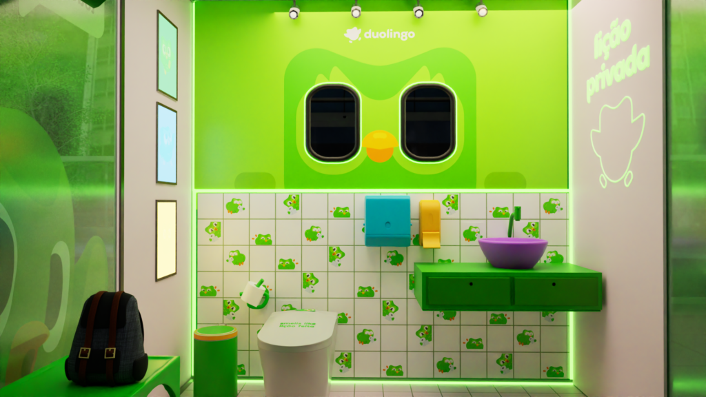Duolingo lança campanha “Lição Privada” com banheiro VIP na Paulista