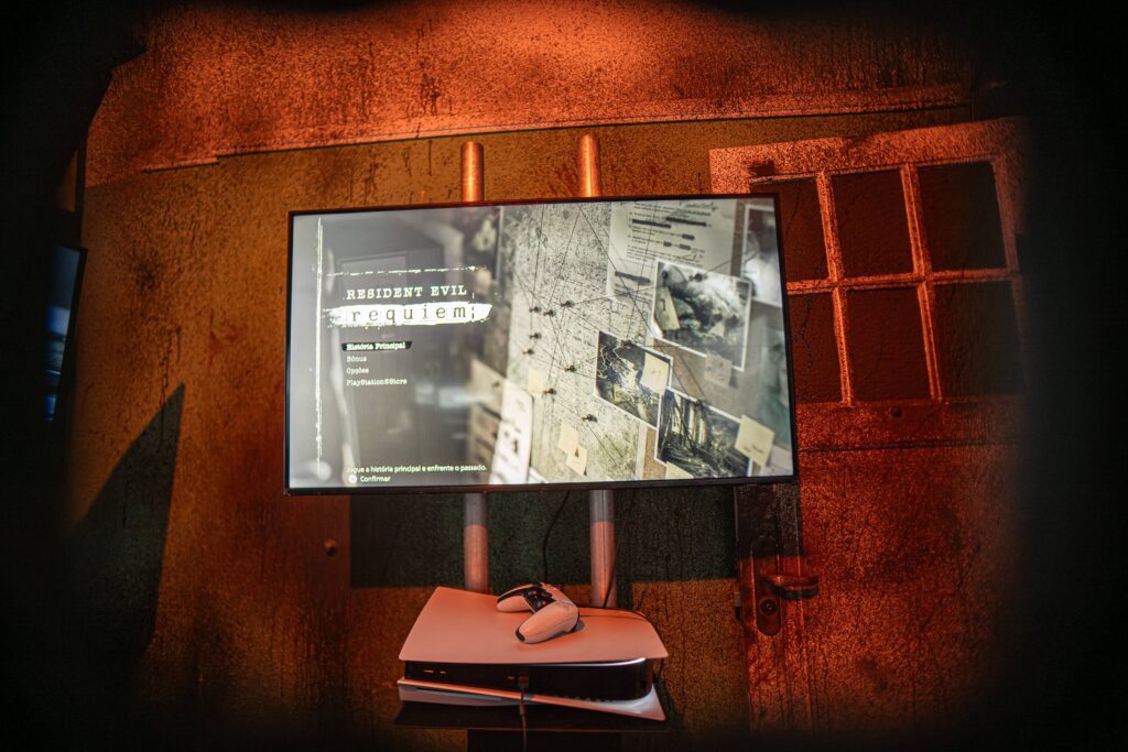 Dentro do Edifício Rolim, os convidados foram recebidos em um lobby que mais parecia cena do game. Munidos de kits de sobrevivência, encararam enigmas, liberaram áreas secretas e testaram o jogo em estações dedicadas. A imersão veio com direito a efeitos sonoros, iluminação tensa e atores caracterizados que, em momentos estratégicos, obrigavam os participantes a interromper os desafios e se esconder — elevando a pressão e a fidelidade à atmosfera do survival horror.