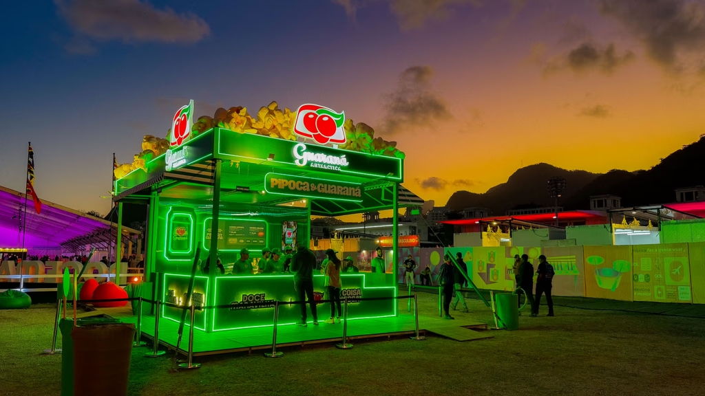 No espaço, os consumidores podiam comprar pipoca, escolher diferentes opções de guaraná e aproveitar um lounge exclusivo da marca. O ambiente ainda contava com um painel de LED transmitindo, em tempo real, os shows do festival, garantindo que ninguém perdesse nenhum detalhe da programação.