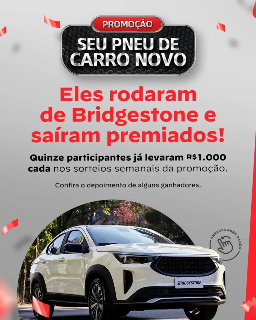 No campo promocional, a Bridgestone, em parceria com a Roda Trade, realizou a segunda edição da campanha nacional “Seu Pneu de Carro Novo”. Voltada a consumidores interessados em trocar os pneus com vantagens, a ação sorteou três Fiat Fastback 0 km, além de oferecer descontos imediatos de até R$ 280 na compra de pneus Bridgestone ou Firestone e prêmios semanais de R$ 1.000, totalizando R$ 25 mil em cartões de crédito virtuais. A mecânica simples e multicanal contribuiu para ampliar o alcance e o engajamento da campanha em todo o país.