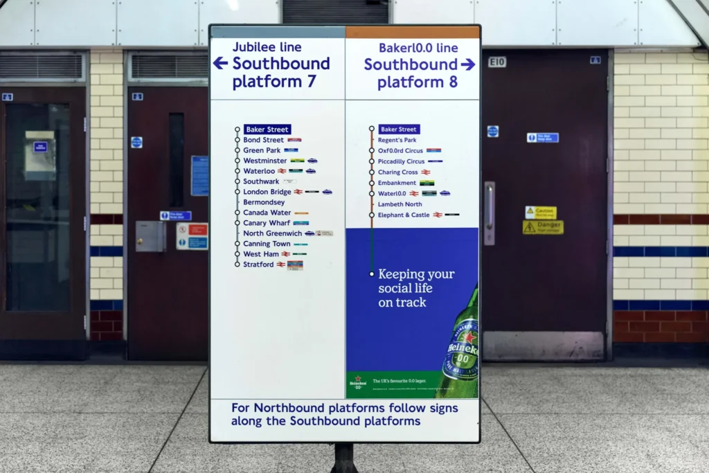 O metrô de Londres ganhou uma mudança curiosa — e histórica — neste mês de janeiro. A Transport for London (TfL), órgão responsável pelo transporte público da capital britânica, renomeou temporariamente a tradicional linha Bakerloo para “Bakerl0.0”, como parte de uma ação especial da Heineken 0.0, a versão sem álcool da marca.
