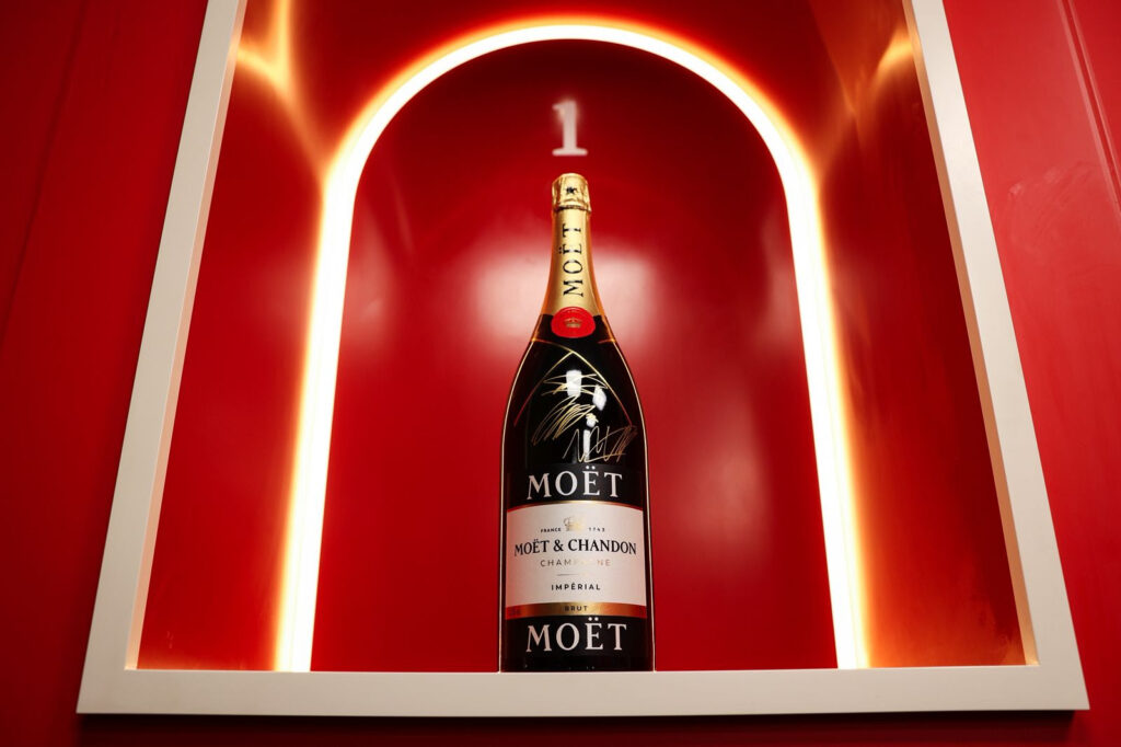 Para marcar os 75 anos da Fórmula 1, a Moët & Chandon apresentou uma nova versão do Jeroboam Celebrativo, inspirado no design original, agora com duplas assinaturas “MOËT” acima e abaixo do rótulo. O formato reforça a conexão entre tradição e modernidade, entre o luxo do champanhe e a paixão pelas pistas.