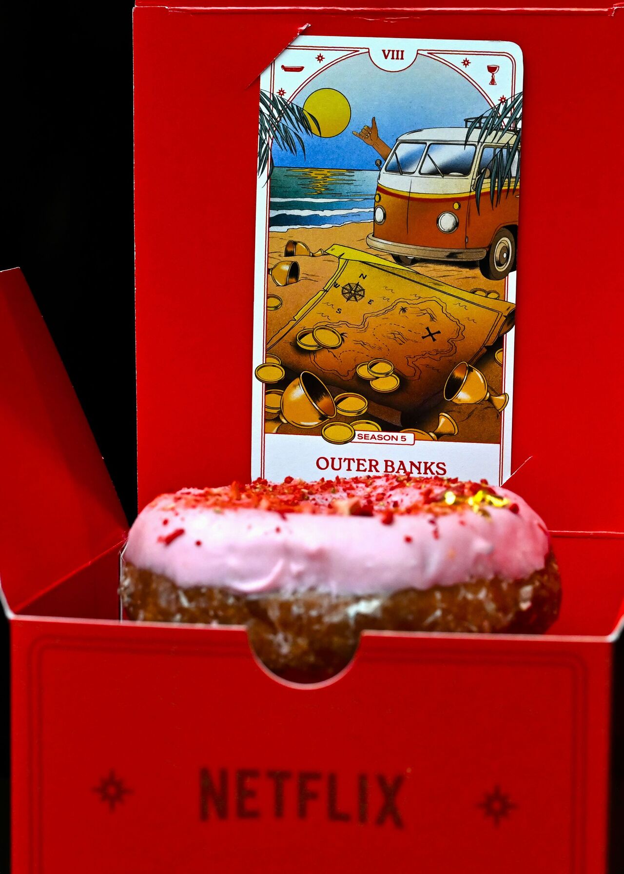 O espaço foi dividido em três ambientes complementares. A jornada começava com a ocupação da loja de smoothies SunLife Organics, funcionando como um “aquecimento” para a marca. Donuts inspirados em IPs da Netflix, smoothies com nomes personalizados e embalagens temáticas deram o tom leve e acessível da campanha.