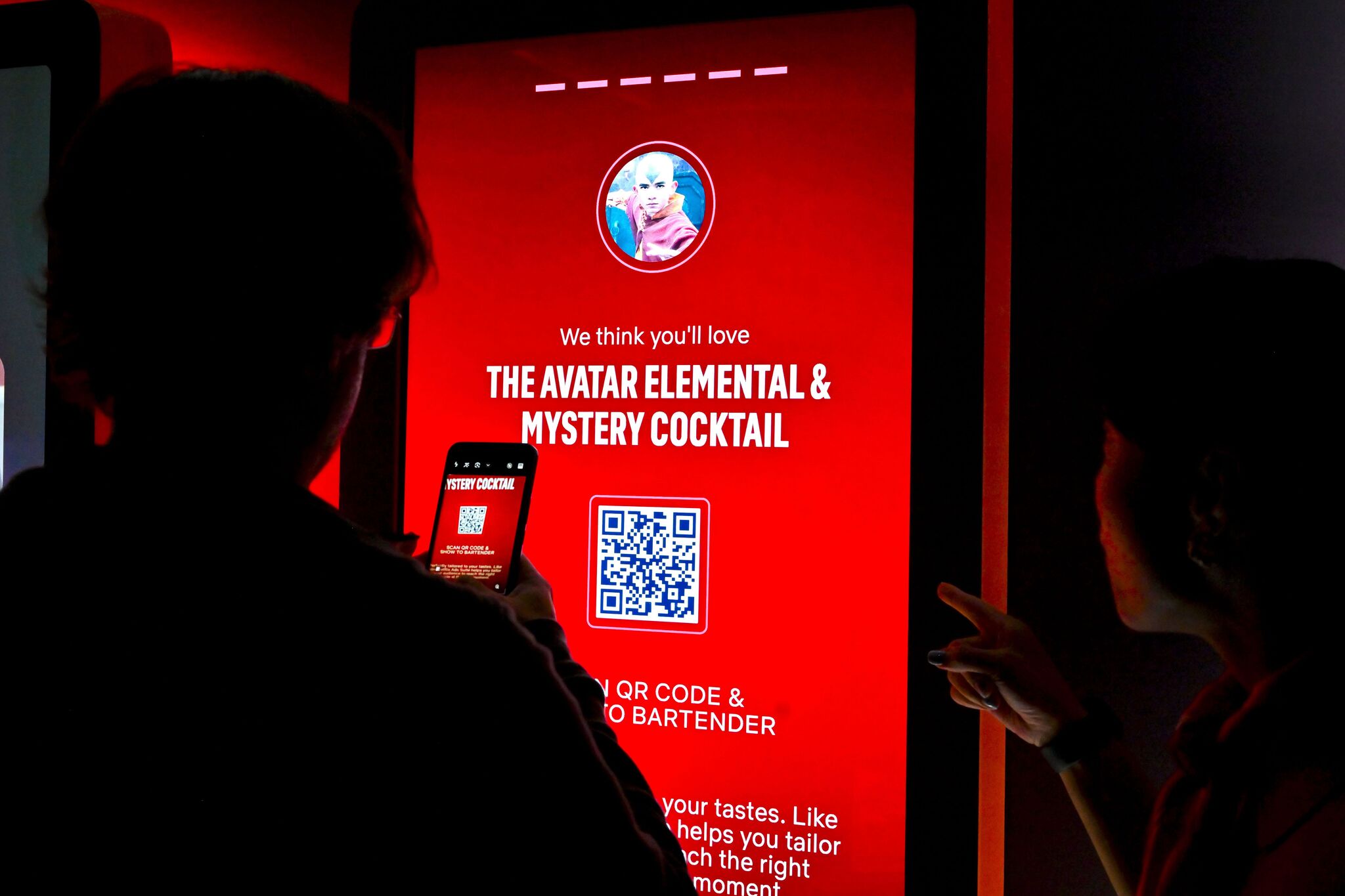Nos bastidores da loja, um bar secreto — acessível apenas por convite — elevava a experiência. Com atmosfera premium, o espaço foi pensado para conversas mais estratégicas, combinando encontros informais, telas interativas e um quiz de mixologia conduzido pelo público, conectando entretenimento e storytelling de marca.