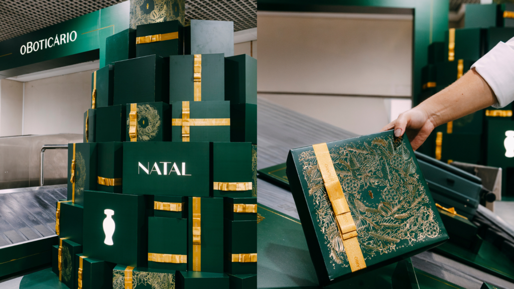 Os passageiros que desembarcaram no dia 5 de dezembro nos aeroportos internacionais de Guarulhos (SP), Afonso Pena (Curitiba) e José María Córdova (Medellín) foram recebidos por uma cena inusitada: entre as malas que chegavam pela esteira, surgiam kits natalinos de O Boticário, transformando um momento comum da viagem em uma experiência de surpresa e afeto.