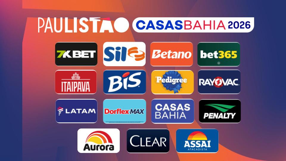 A força comercial do Paulistão Casas Bahia se reflete no robusto time de patrocinadores desta temporada. Assaí, Aurora, Bet365, Bet7K, Betano, Bis, Casas Bahia, Clear, Dorflex, Energizer, Itaipava, Latam, Pedigree, Rivalo e Sil integram o portfólio de marcas que apostam no torneio.