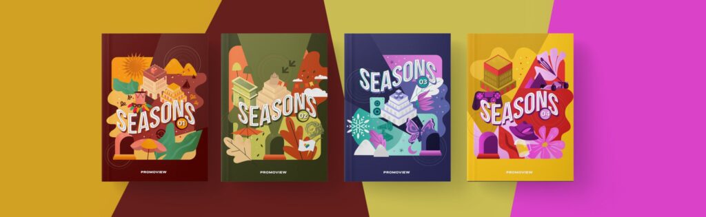O nome Seasons nasceu da sugestão de Júlia Padula, ex-colunista do Promoview e hoje head de marketing da Benedo, inspirada no conceito de “temporadas” e nas estações do ano, que influenciam comportamento e experiências. A identidade visual é assinada por Gabriele Swiszez, diretora de criação do Promoview, com paletas de cores e estéticas específicas a cada trimestre.