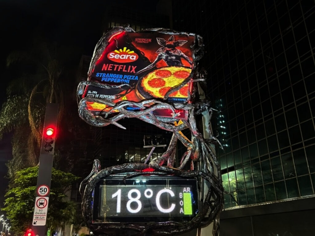 Com a estreia do primeiro episódio da quinta e última temporada de Stranger Things na última quarta-feira (26), a Seara lançou uma série de ações nas ruas de São Paulo que ficam ativas até 2 de dezembro. A marca ocupa pontos icônicos da capital com ativações de mídia out-of-home (OOH) para promover sua linha Stranger Things.