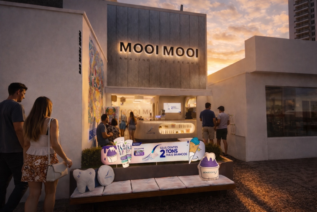 A loja da Mooi Mooi ganha ambientação especial, com fachada envelopada por Sensodyne, reforçando a presença da marca no ponto físico. Outro destaque da ativação refrescante é o lançamento de bombons de sorvete em formato de dente, no sabor Mascarpone com Limão, disponíveis enquanto durarem os estoques.