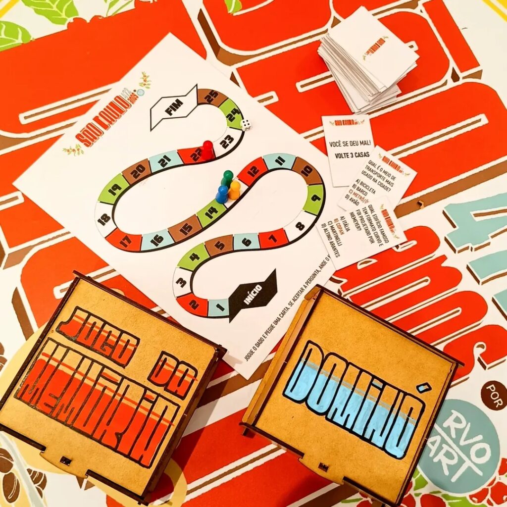Para ampliar a interação, a exposição oferece jogos temáticos. O público pode participar de atividades como Tabuleiro, Memória, Amarelinha e Dominó. Há ainda desenhos interativos, tornando a visita lúdica e inclusiva para todas as idades.