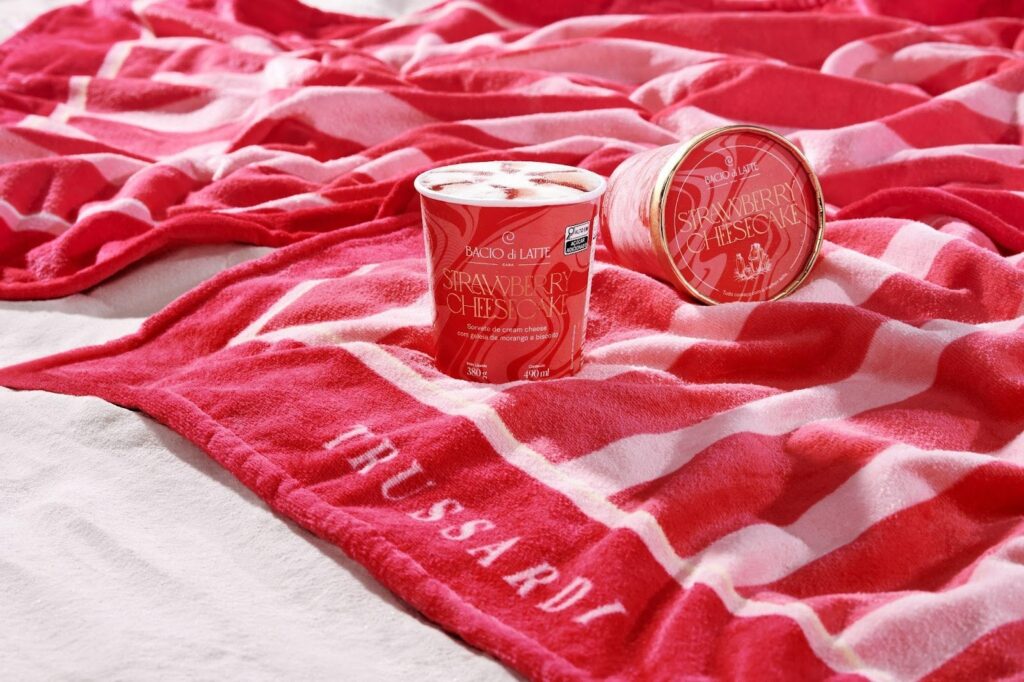 A campanha será veiculada em plataformas como YouTube, Instagram e Pinterest. Isso reflete a aposta em uma linguagem visual leve e sensorial. Além disso, busca conectar-se a um público que valoriza design, autenticidade e significado. A coleção será uma edição limitada de toalhas de praia. Elas são inspiradas nos sabores icônicos da famosa gelateria.