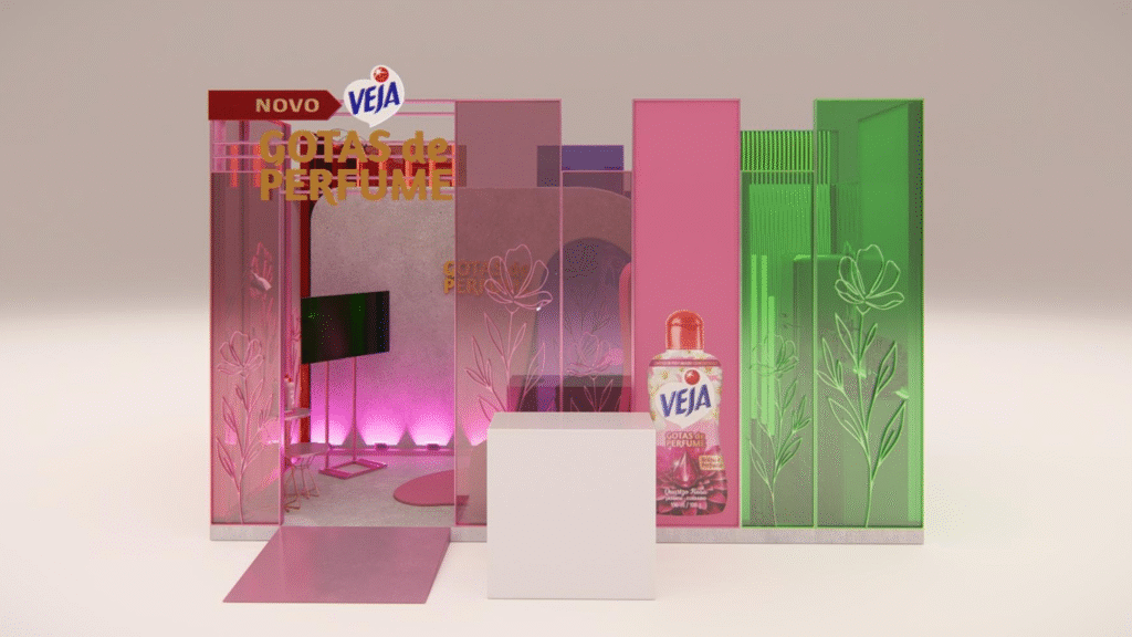 De 3 a 9 de dezembro, a “Casa Veja Gotas de Perfume” abre suas portas com um percurso que combina fragrâncias, cores e design para transformar os ambientes em verdadeiros cenários sensoriais. A proposta é traduzir o conceito do produto — limpeza com perfume marcante e brilho intenso — em experiências que estimulam os sentidos.